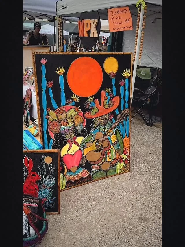 Kate Barton (also known as, WarPaintKate) is a Texas-based artist with over 20 years of experience, known for creating bold, large-scale pieces that capture the beauty and spirit of West Texas. Inspired by the rugged landscapes and wildlife of the region, her work bursts with vivid colors and dynamic dark desert energy. Exhibiting in smaller shows across Central Texas, Kate brings the vast deserts and wild creatures of the Lone Star State to life on canvas.